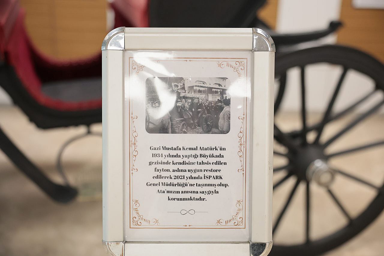 1934 yılında Büyükada’da Atatürk’e hizmet etmek üzere tahsis edilen fayton, Adalarda fayton kullanımının sona ermesinin ardından, 2021 yılında İstanbul Büyükşehir Belediyesi (İBB) iştiraki İSPARK tarafından teslim alınarak aslına uygun şekilde restore edildi. Dört yıldır özenle korunan bu nostaljik ulaşım aracı, İSPARK Genel Müdürlüğü binasında sergilenerek Cumhuriyet’in ilk yıllarındaki o büyük dönüşümün izlerini bugüne taşıyor. Tarihi faytonun üzerinde yer alan her detay, bir yandan Cumhuriyet’in kuruluş dönemindeki heyecanı hatırlatırken, bir yandan da modern Türkiye’nin geldiği noktayı ve Atatürk’ün ileri görüşlü, sade, çevreci vizyonunu simgeliyor.